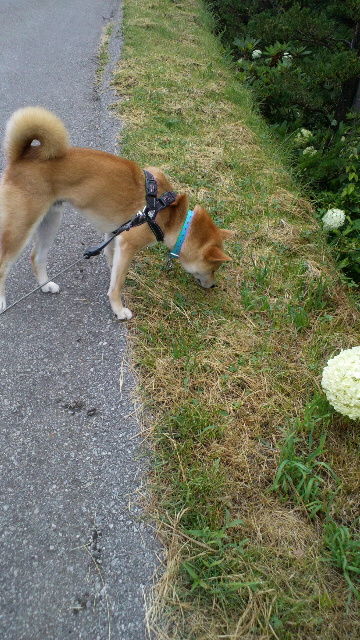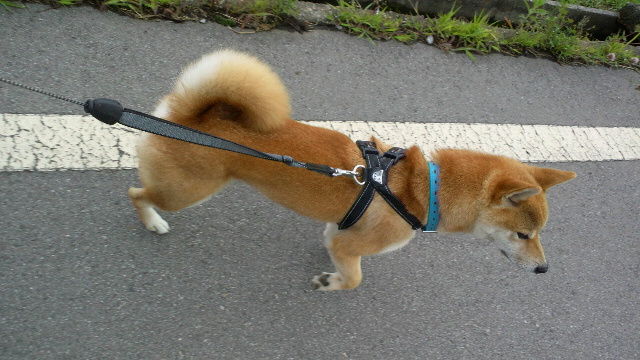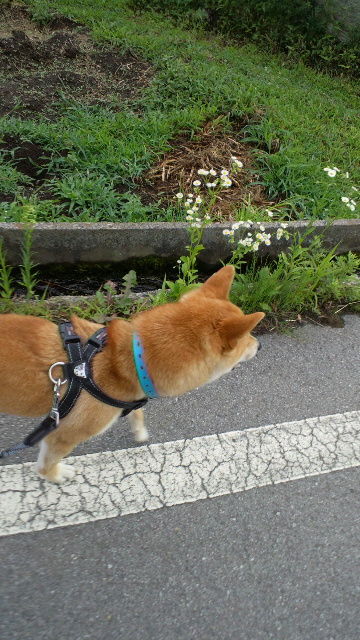 今朝は曇り空で、いつもより涼しく歩きやすい気候でした♪ ハチちゃんは軽い足取りで楽しみながら歩いてくれました(^^)