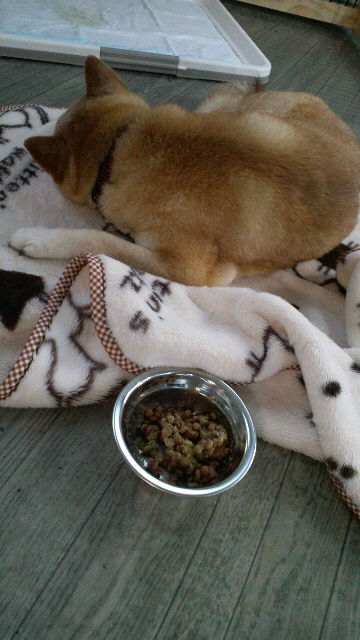 長期預かり柴チャッピーちゃん、寝ていて食べません。
