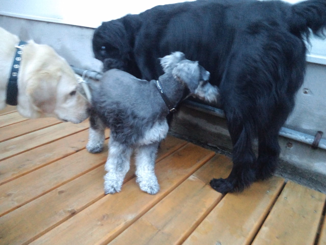 去年も来てくれたシュナウザーのルーエ君がチェックインしました。去年はパピーでしたが今年はすっかり大人になりましたね。相変わらず小型犬では相手は出来ない位のパワフルさ、大型犬と遊び回ってます。