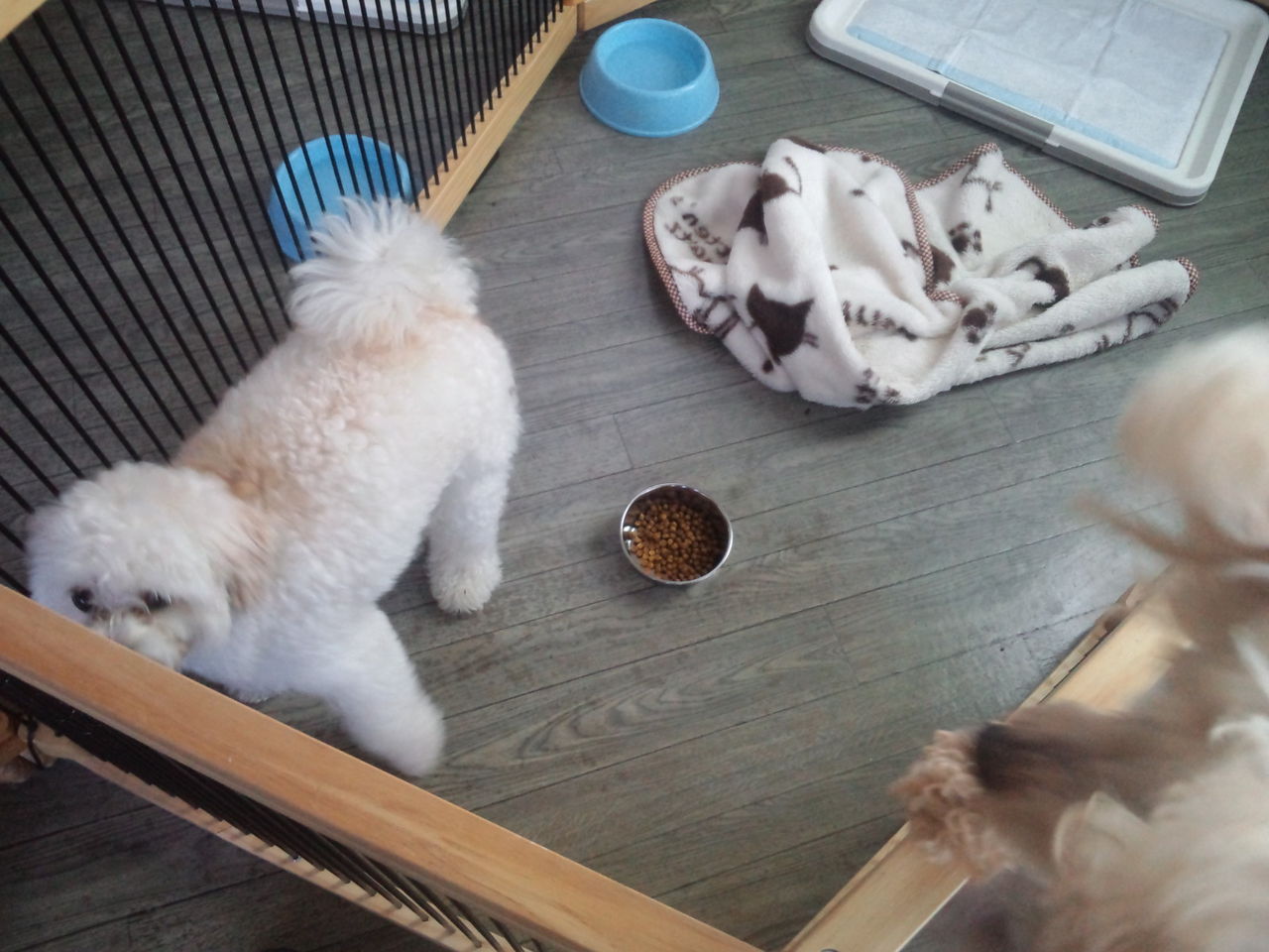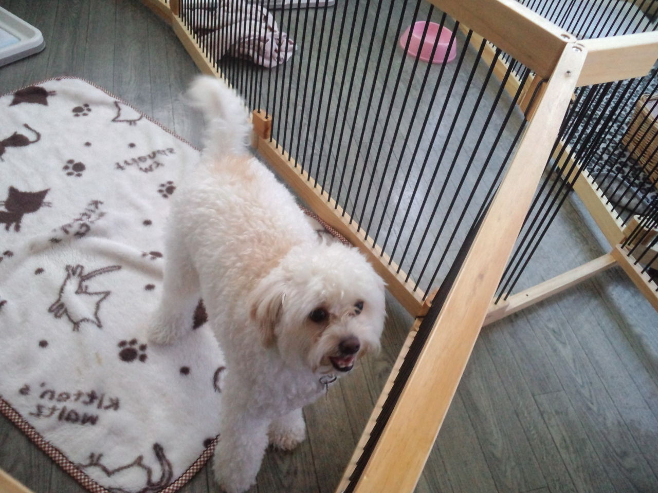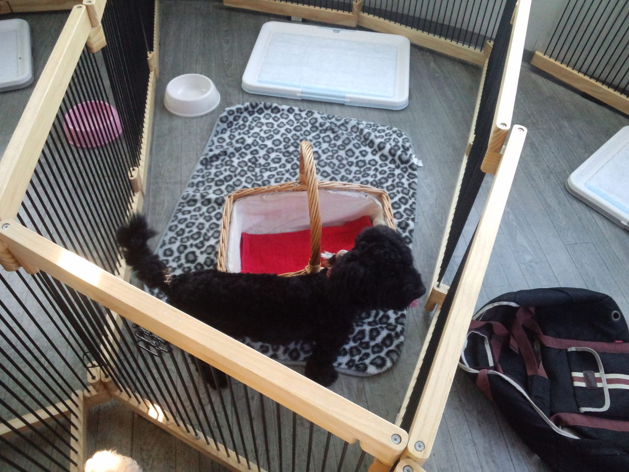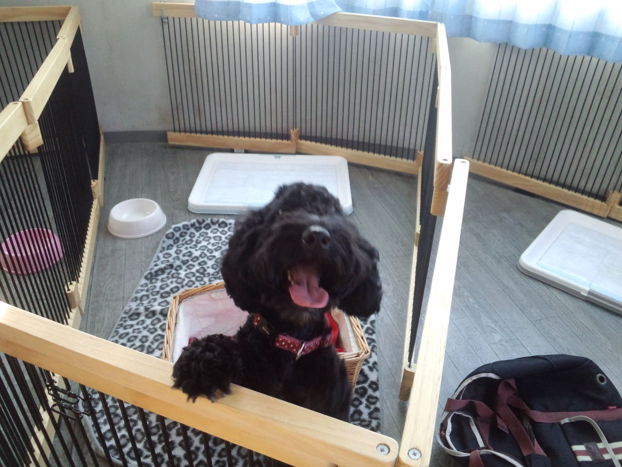他のワンコ達は?とのミッキー君、サークル預かりです。周りにワンコが居て居心地が悪いかな?