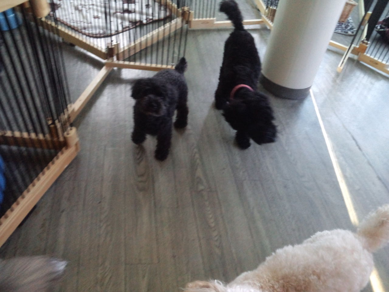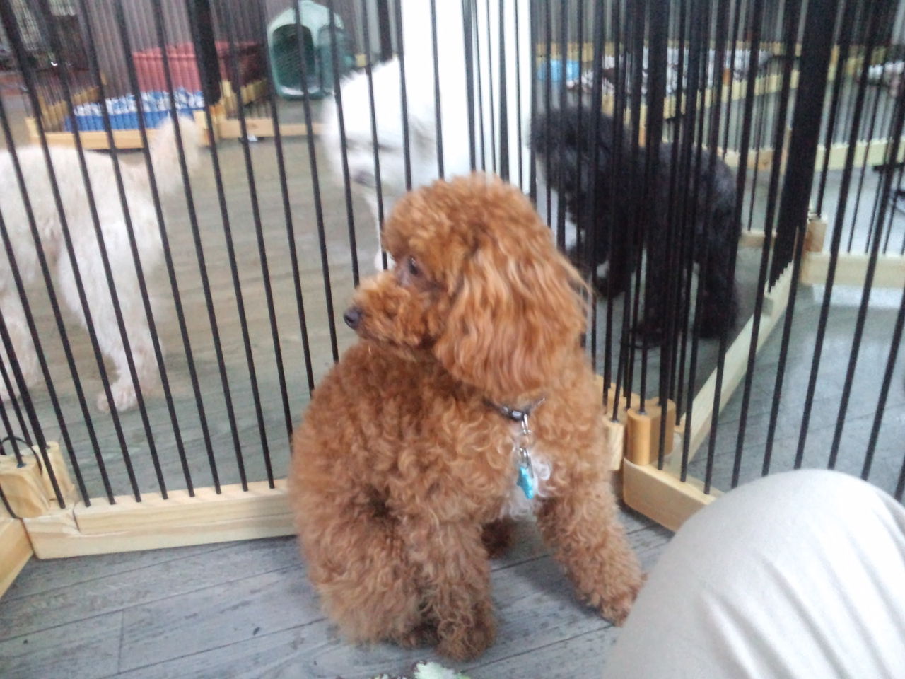 ミックスショコラ君がチェックインしました。ショコラ君はまだパピー、他のワンコ達とも仲良くしてます。