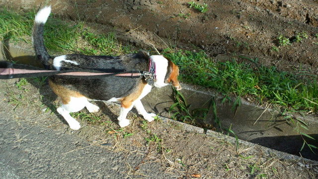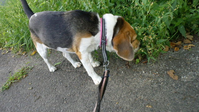 ビーグルラッキーちゃんはとってもマイペース(^^) 臭いチェックを楽しみながら、ゆっくりゆっくり歩いてくれました♪