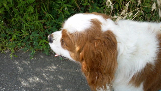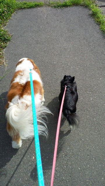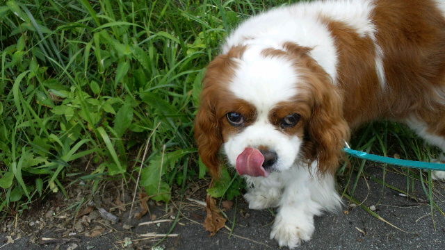 キャバリアマリン君は少し興奮気味のお散歩(^^; 勢いに任せてグングン進み、お店に戻るとやっと落ち着いてくれました♪