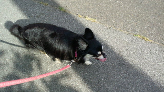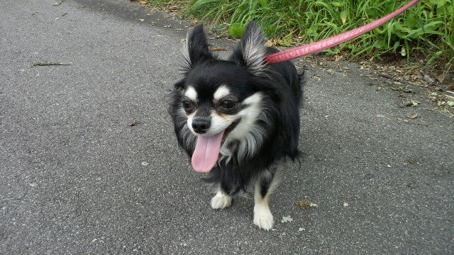 チワワコロンちゃんは冷静で、周囲を見ながらのお散歩でした(^^) 時々足を止め、振り返りながら歩いていました♪