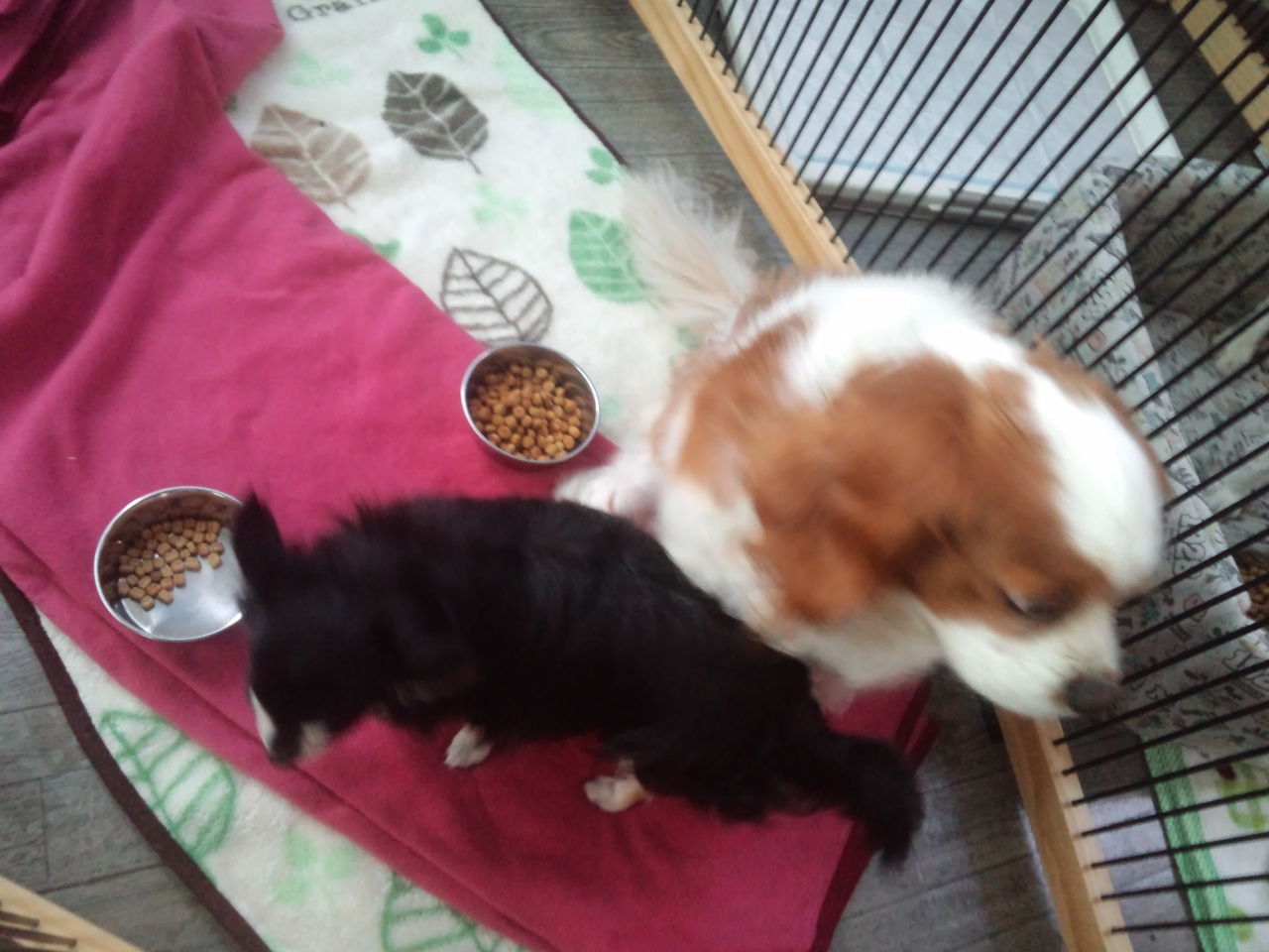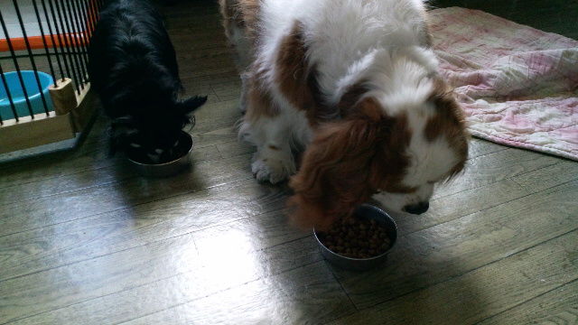 キャバリアマリン君、ほぼ完食しました。チワワコロンちゃん、口を付けません。