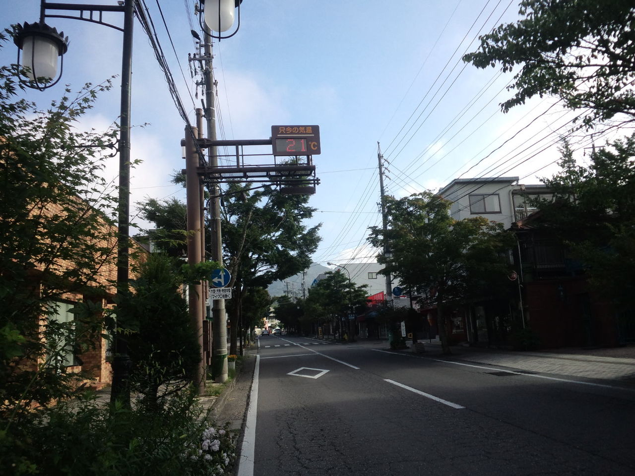 今朝の軽井沢の気温は21℃、天気は晴れてます。
