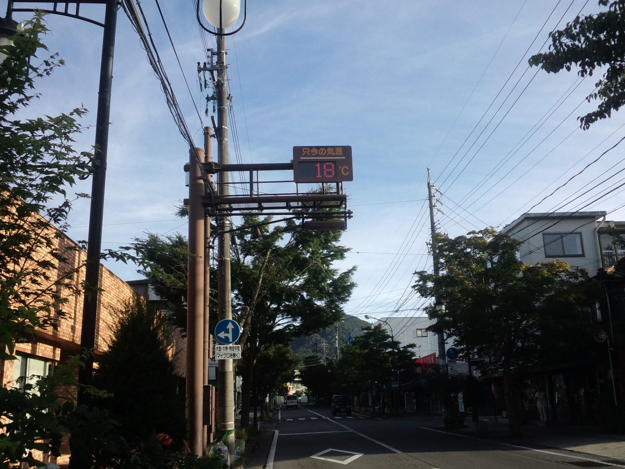 今朝の軽井沢の気温は18℃、天気は晴れてます。