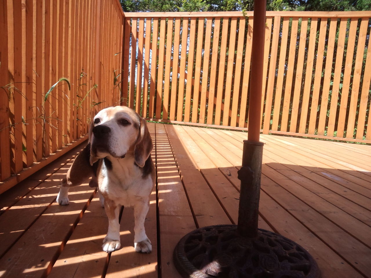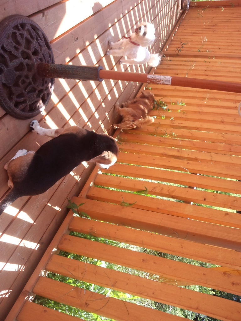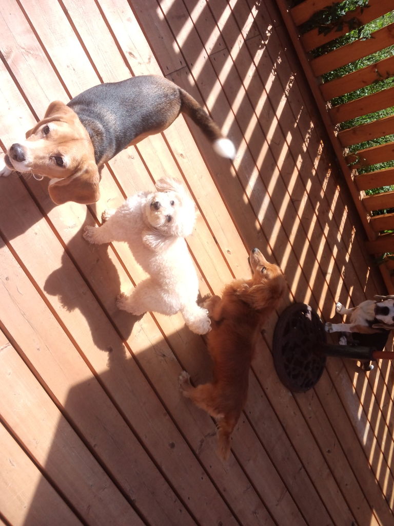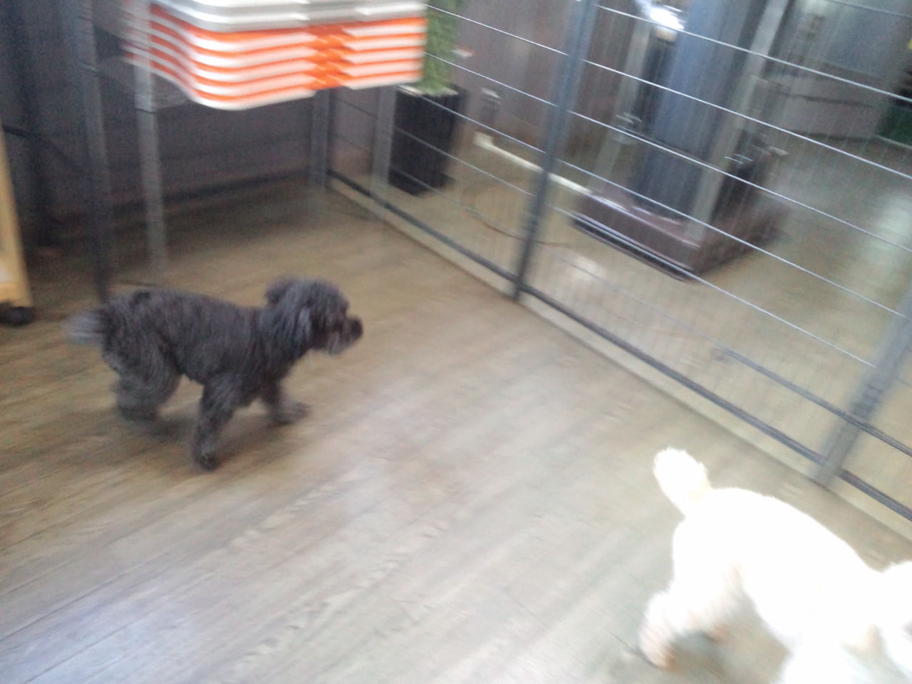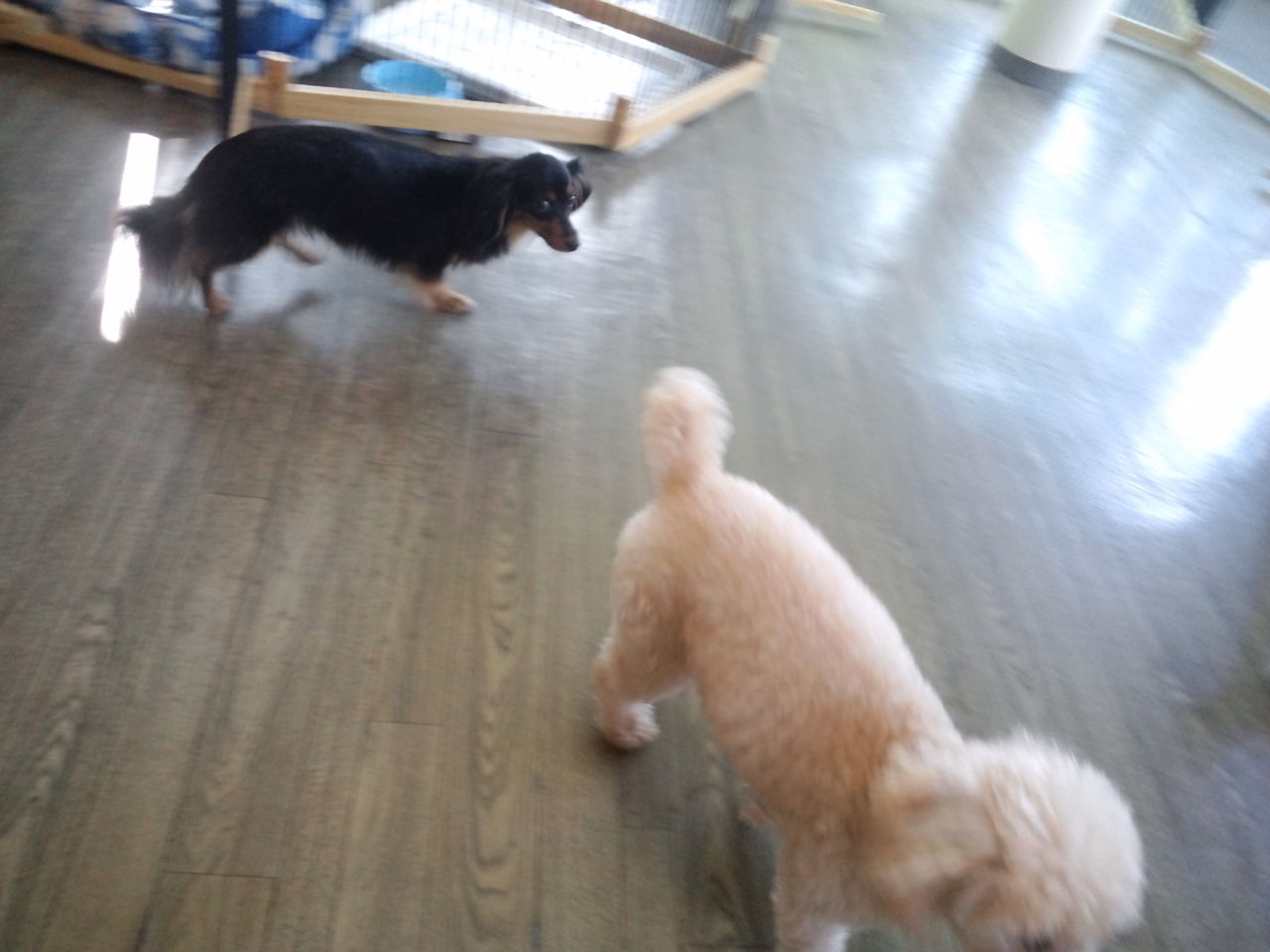 すぐにデッキに出て他のワンコ達と自由に遊んでます。