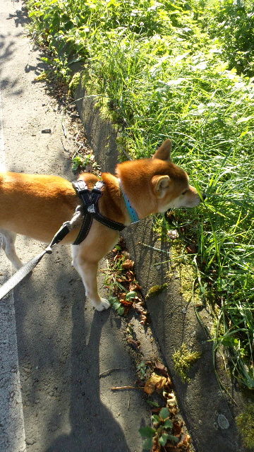 ハチ君はご機嫌でお散歩してます。また今日も用水路でバシャバシャしてました。