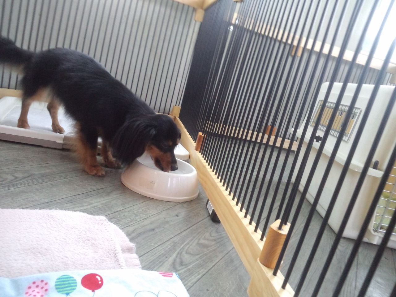 ダックスハッピー君、口を付けません。 長期預かり柴ハチ君、少し口を付けただけです。おやつは食べるのですが…。