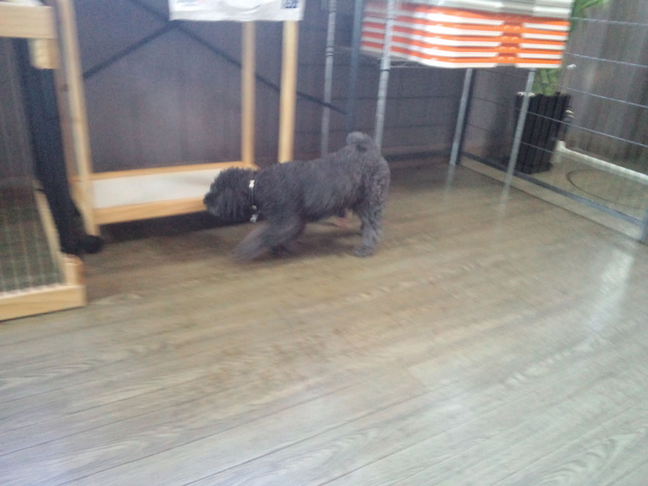 すぐにサークルから出て店内を探検。その後は他のワンコ達と仲良くしてます。
