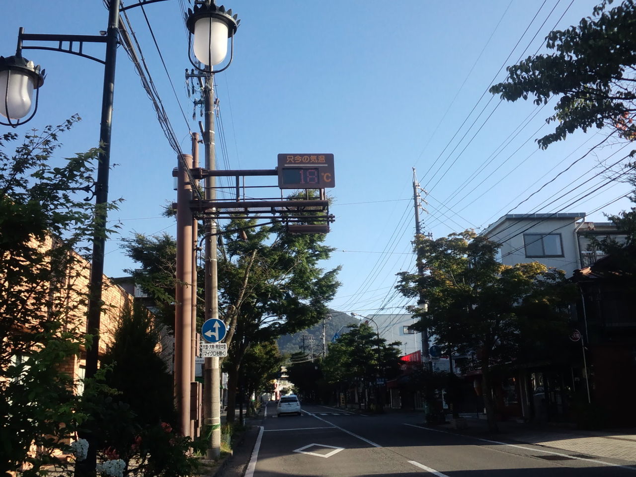今朝の軽井沢の気温は18℃、天気は晴れてます。