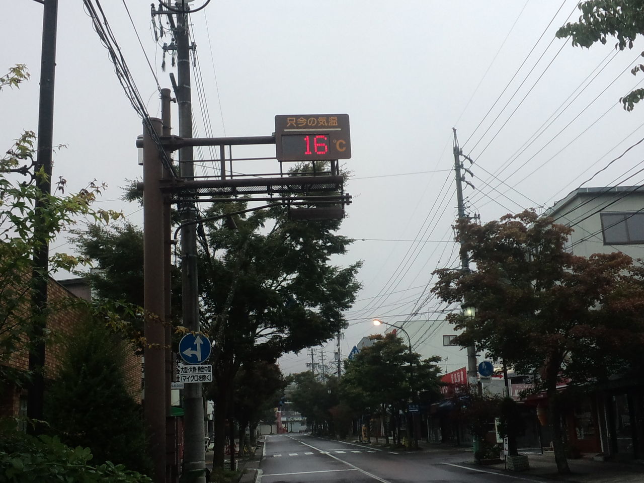 今朝の軽井沢の気温は16℃、天気は雨が降ったり止んだりです。