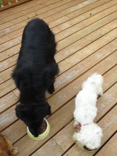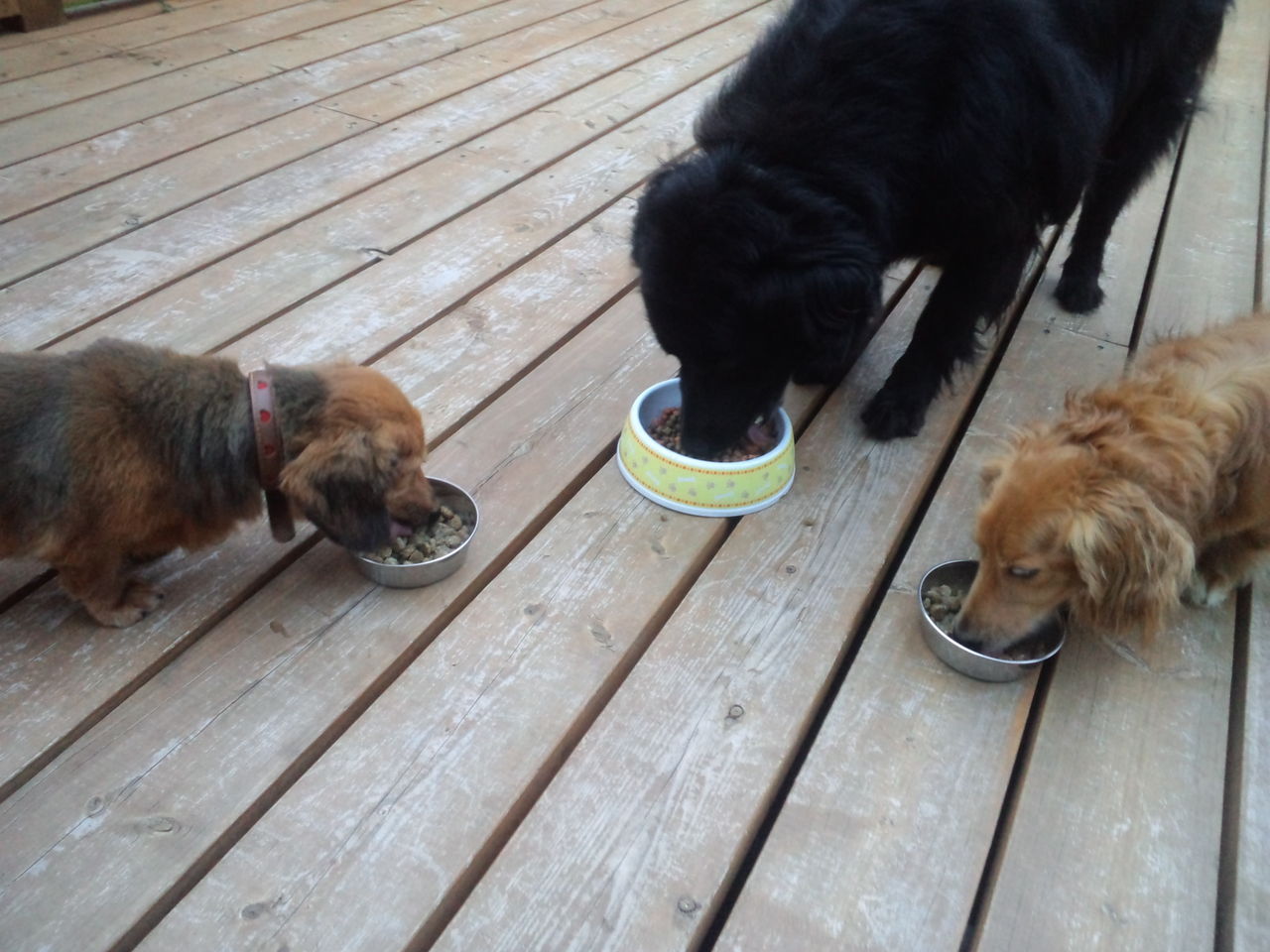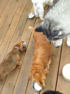 キャバリアチョコ君、口をつけません。 トイプーエジソン君、口をつけません。 生涯預かりダックスズのラブ君とチャコ君、しっかり完食しました。