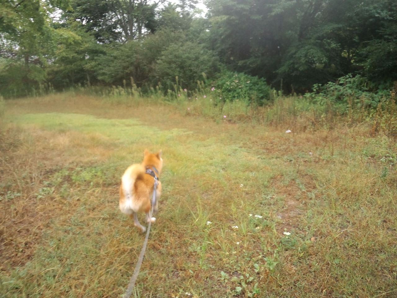 お気に入りの原っぱに小躍りして走り込むハチ君でした。