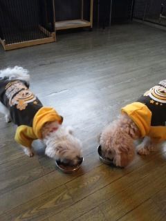 生涯預かりトイプーベラちゃんとマルチーズキュー君、しっかり完食しました。