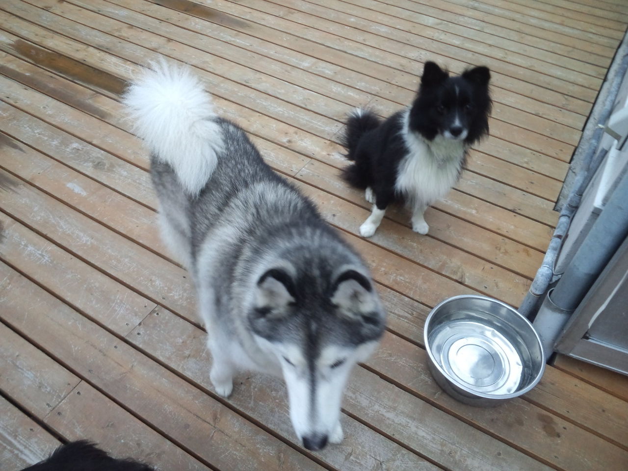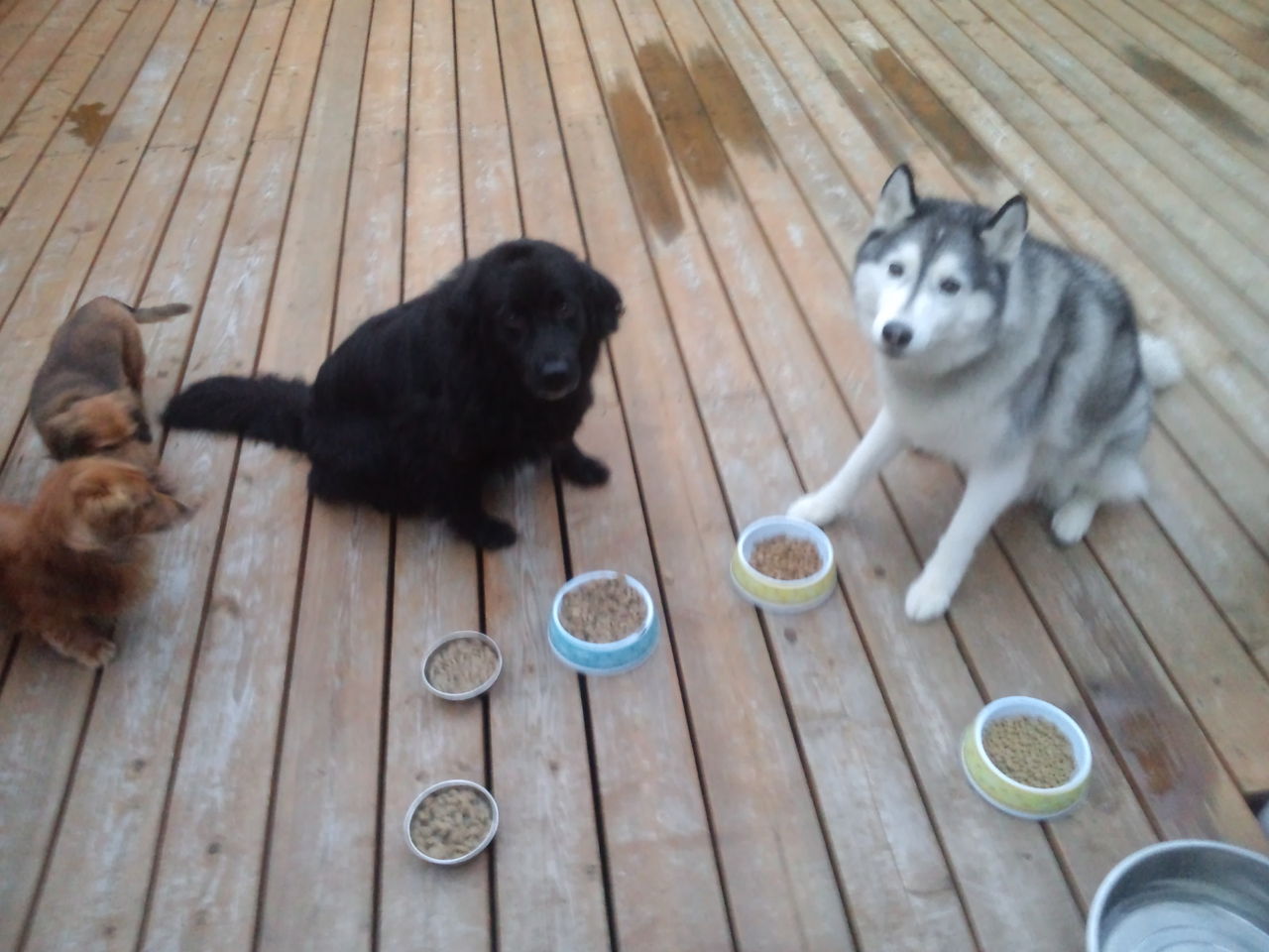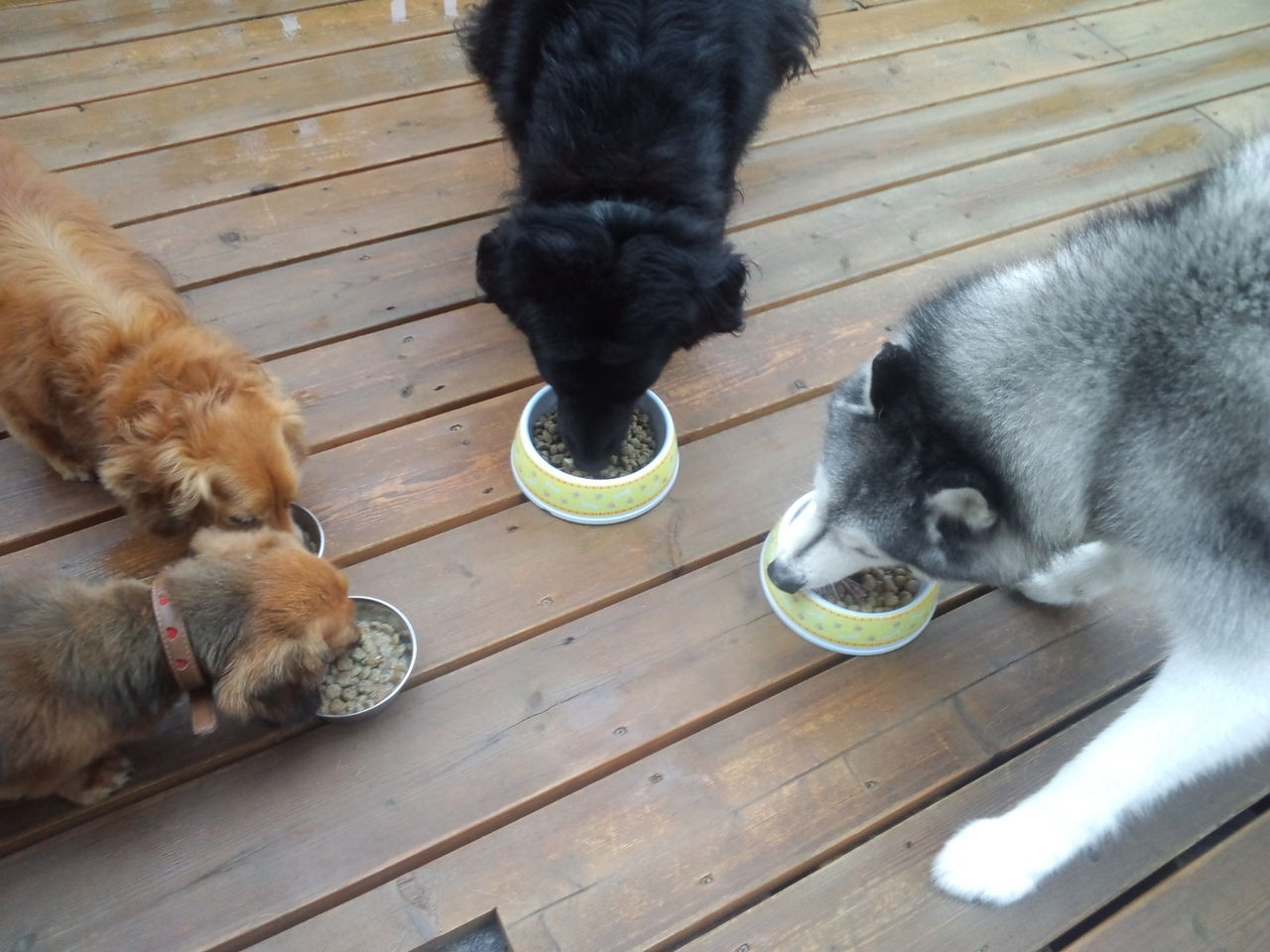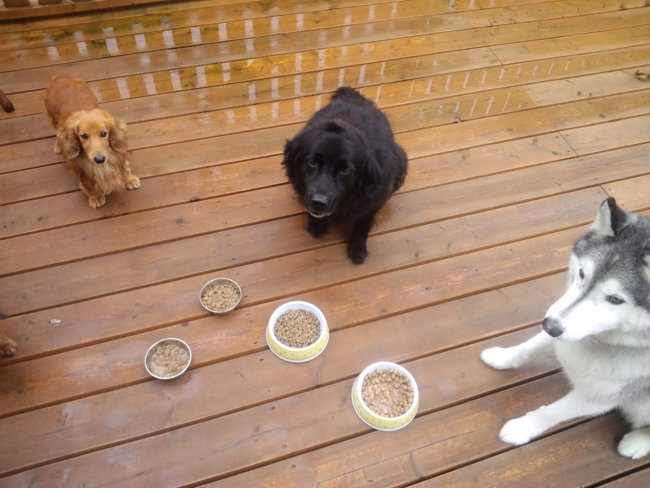 長期預かり柴ハチ君、半分食べました。 ハスキー小太郎君、しっかり完食しました。