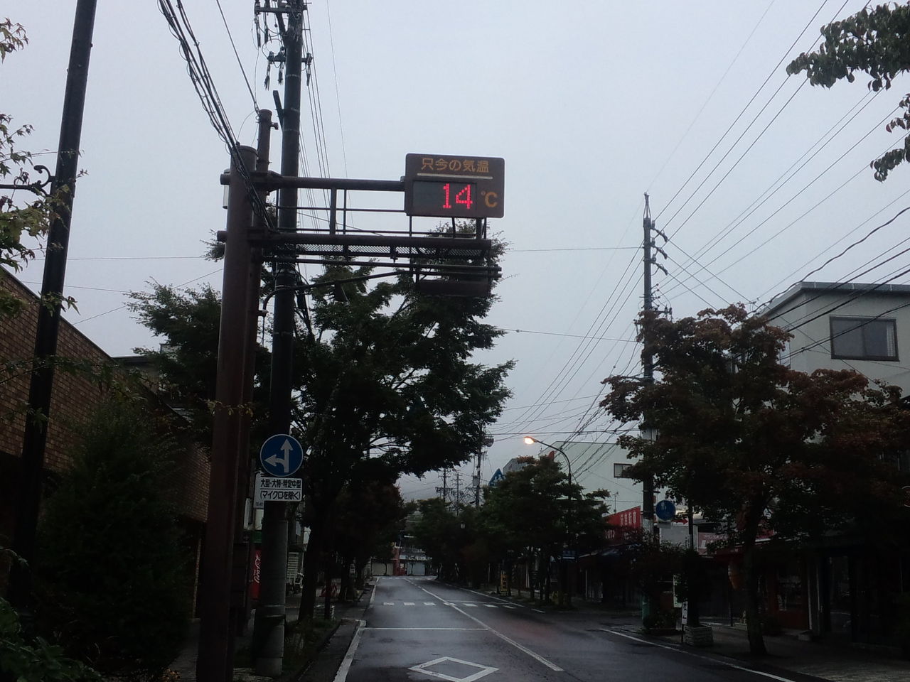 今朝の軽井沢の気温は14℃、天気は霧雨です。