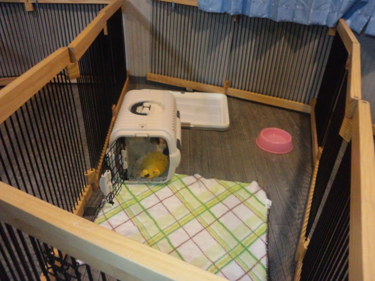まだ少し緊張してるかな?でもすぐにサークルから出てきてます。