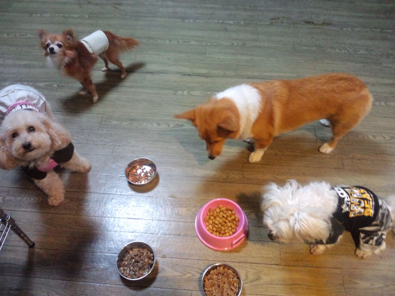 長期預かり柴ハチ君、半分食べました。 コーギーすずちゃん、しっかり完食しました。