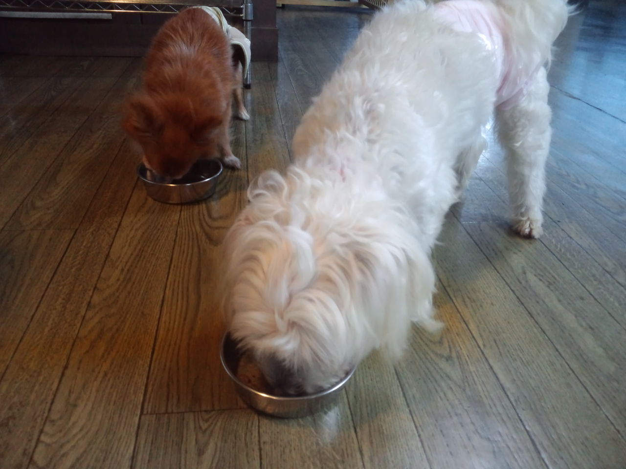 生涯預かりマルチーズキュー君とトイプーベラちゃん、しっかり完食しました。