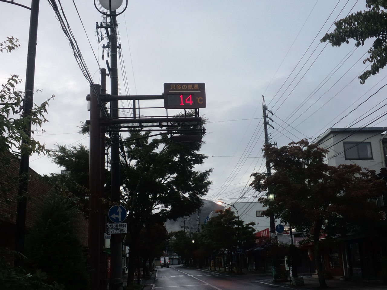今朝の軽井沢の気温は14℃、天気は雨が上がって曇り空です。