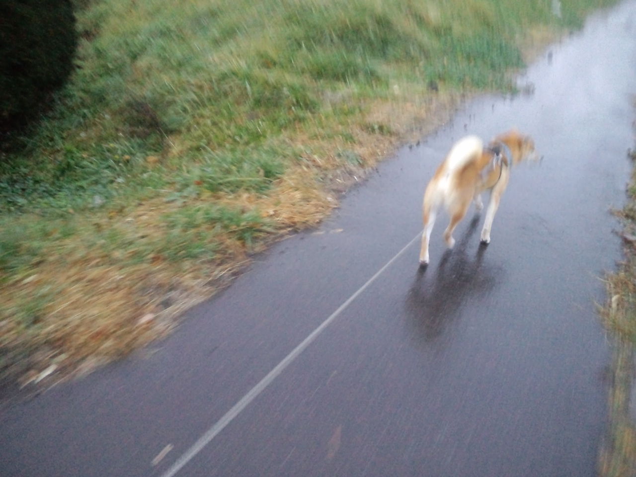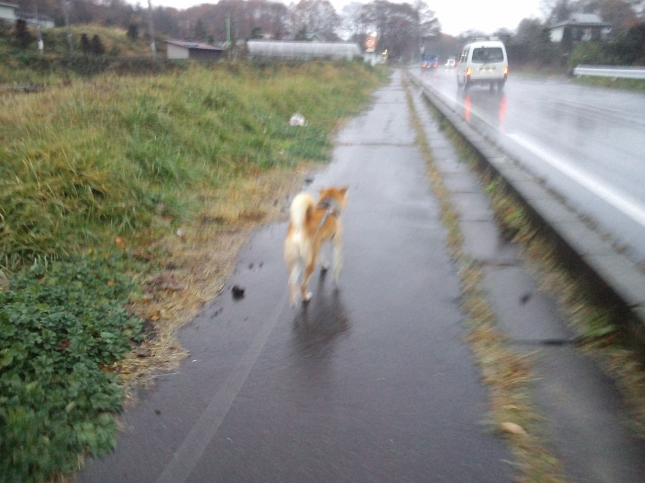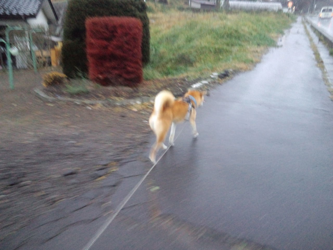 夕方には土砂降りになった軽井沢です。 雨の中でも元気いっぱいにお散歩しるハチ君です。