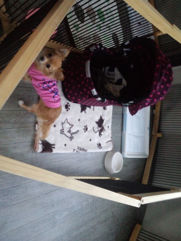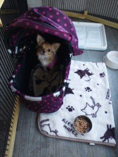 チワワトコちゃん、口をつけません。ハウスから一歩も出る様子が無いので、ハウスの中に入れておきます。