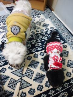 生涯預かりマルチーズキュー君とトイプーパピー虎治朗君、しっかり完食しました。