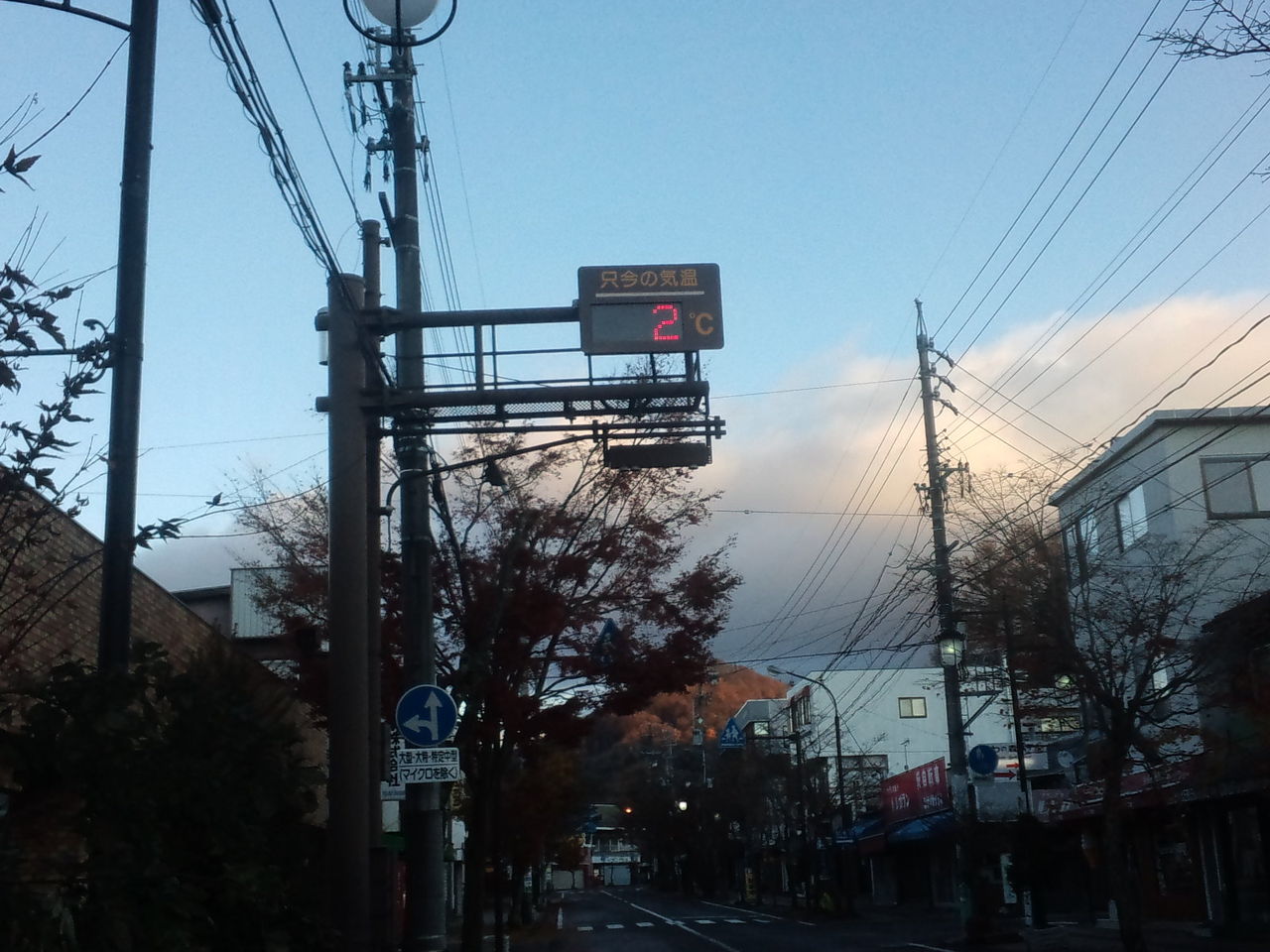 今朝の軽井沢の気温は2℃。天気は雨が上がり晴れてきました。