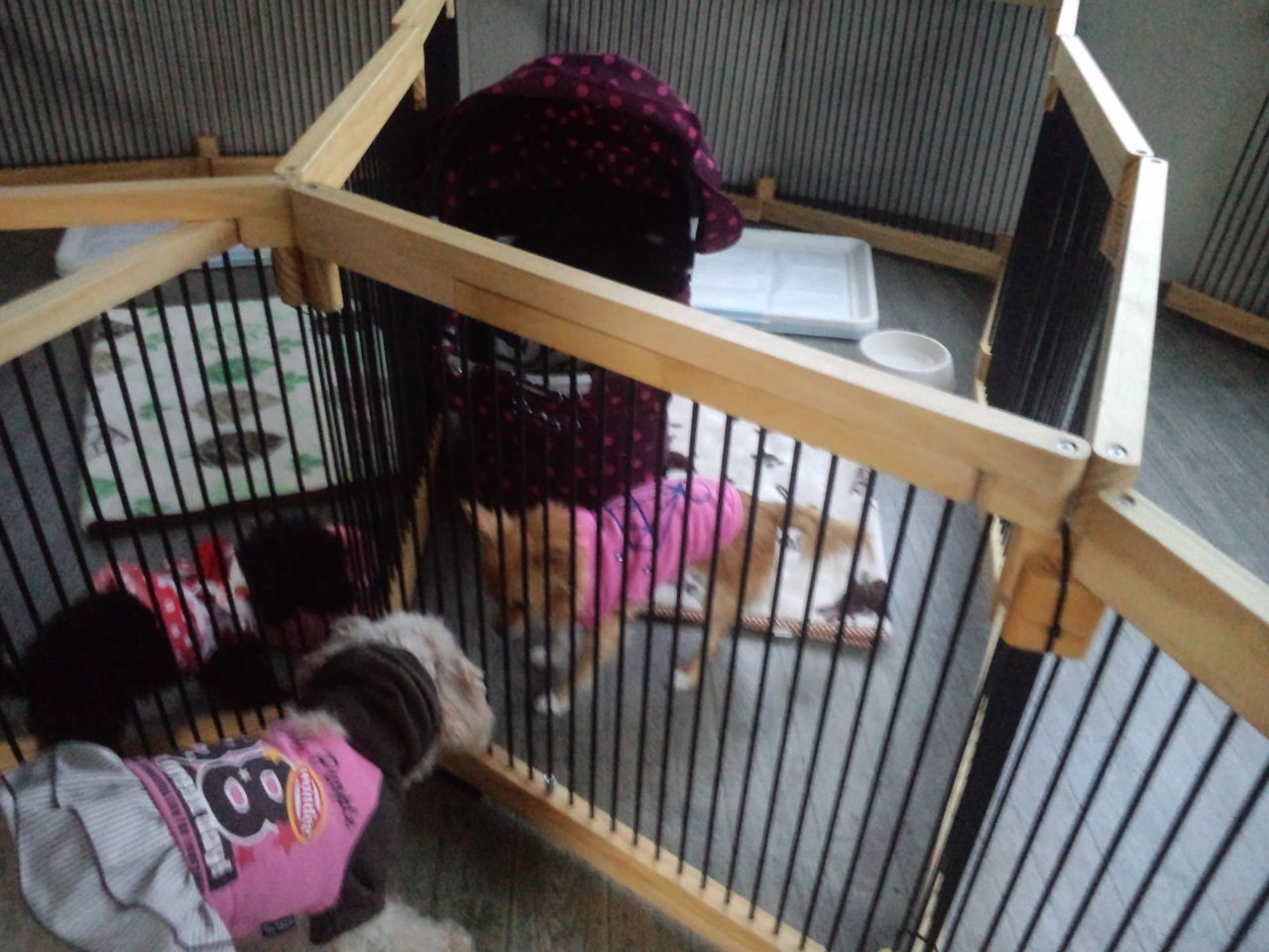 サークル越しに他のワンコの匂いを嗅いですぐに自分のハウスに…