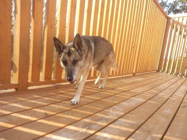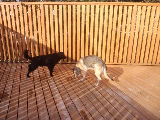 デッキの匂いチェックに忙しいみたいです。チェックが終わったら少し寂しがってヒュンヒュン言ってます。