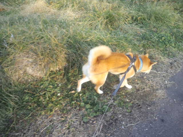 今日はわき道探検してきました。匂いチェックしながら大興奮のハチ君、満足したかな?