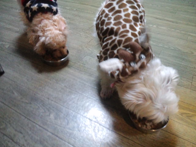 生涯預かりマルチーズキュー君とトイプーベラちゃん、しっかり完食しました。