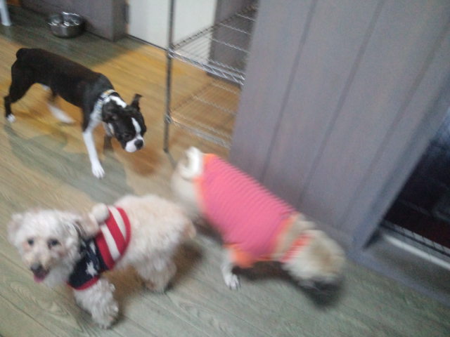 すぐにサークルから出て、他のワンコ達と遊んでます。
