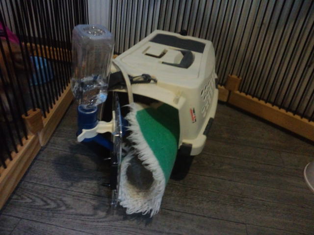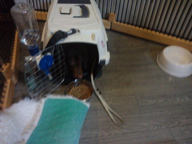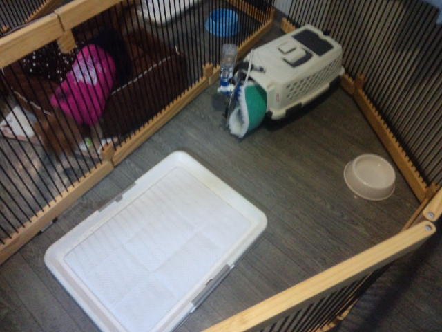 他のワンコが苦手とのトロン君、サークルに入れたらすぐにハウスに引きこもってしまいました。