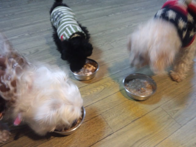 生涯預かりマルチーズキュー君とトイプーベラちゃん、しっかり完食しました。トイプーパピー虎治朗君、しっかり完食しました。