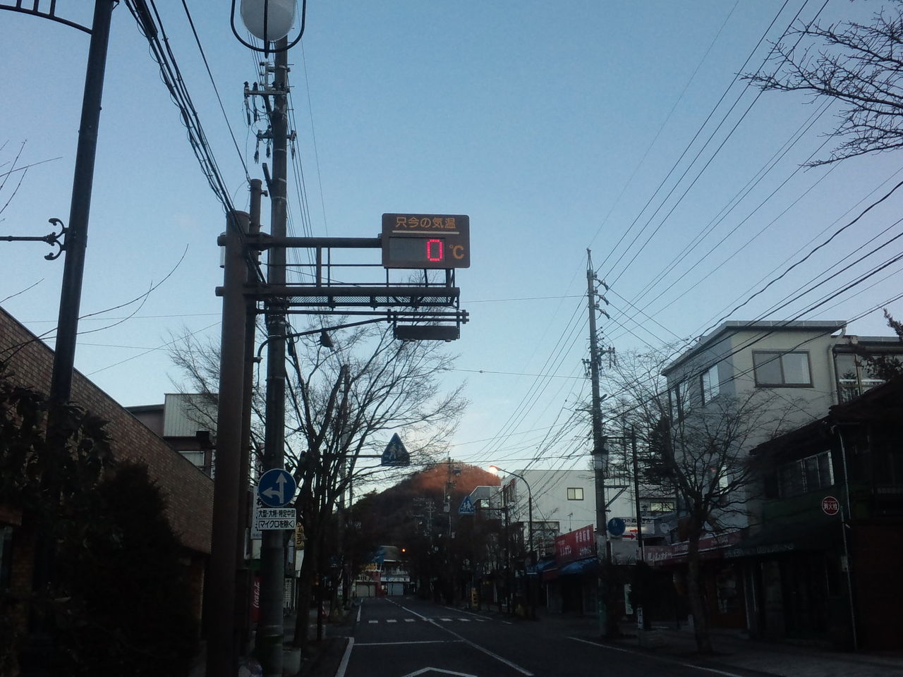 今朝の軽井沢の気温は0℃、天気は晴れてます。