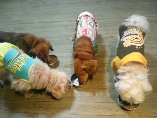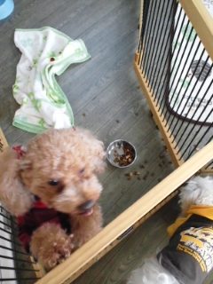 生涯預かりマルチーズキュー君とトイプーベラちゃん、しっかり完食しました。トイプーパピー虎治朗君、しっかり完食しました。