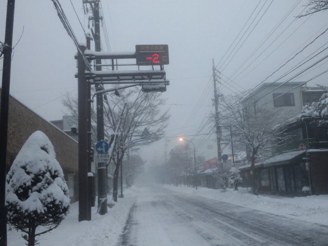 今朝の軽井沢の気温は-2℃、天気は雪がやみました。 積雪は20センチくらいです。