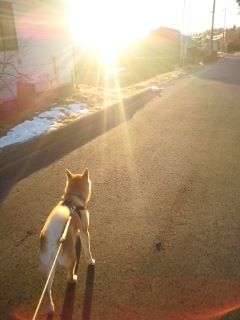 今日は夕日が綺麗です。 ハチくんの毛も夕日色に染まっています(o^∀^o)