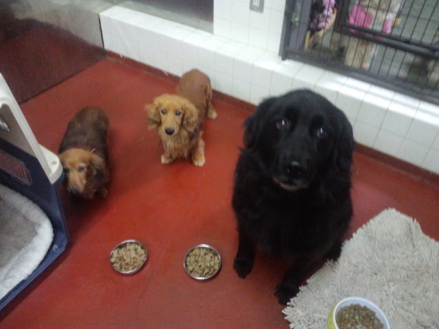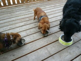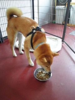 長期預かり柴ハチ君、口を付けません。 生涯預かりダックスズのラブ君とチャコ君、しっかり完食しました。