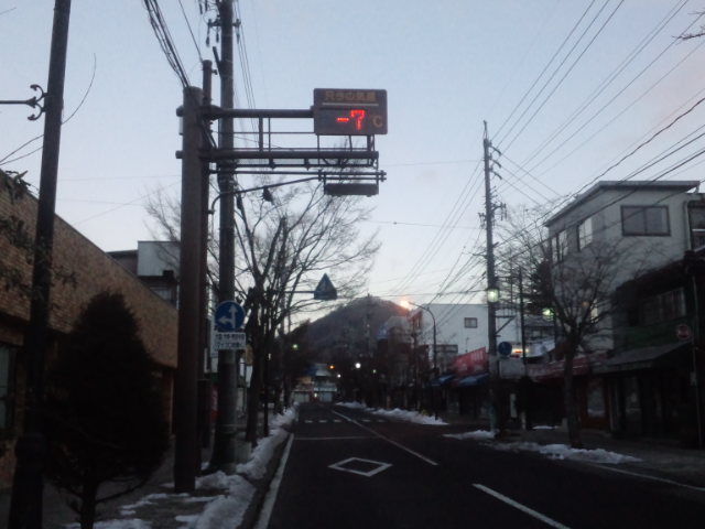 今朝の軽井沢の気温は-7℃、天気は晴れてます。