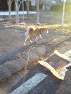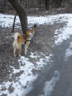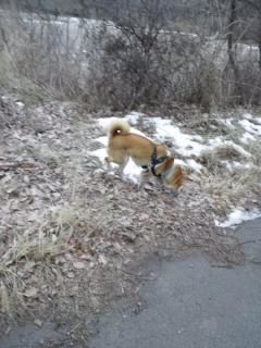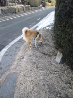 雪がチラついている中のおさんぽになりました。 積もらないでほしいですね! おさんぽ中に会った犬をずーっと見ているハチくんでした。 うんち・おしっこしました!