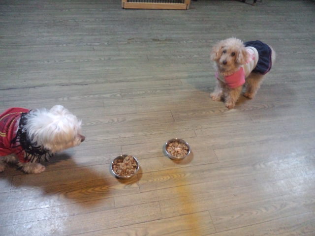 生涯預かりマルチーズキュー君とトイプーベラちゃん、しっかり完食しました。