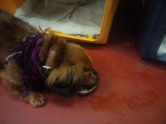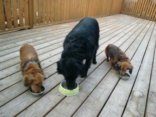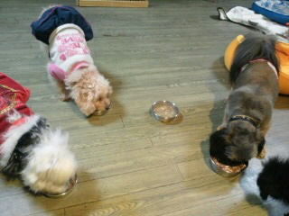 長期預かり柴ハチ君、口を付けません。 生涯預かりダックスズのラブ君とチャコ君、しっかり完食しました。