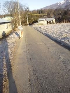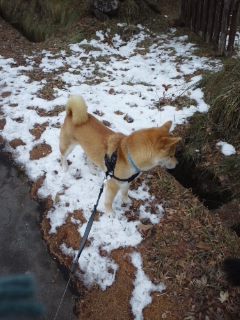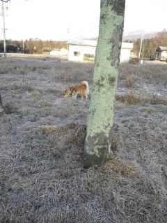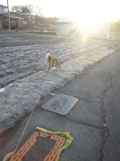 おさんぽしていても、寒さで手がチクチク痛いです。 ハチくんは雪や霜の上をピョンピョン♪ 犬の肉球って凄いですね!!!