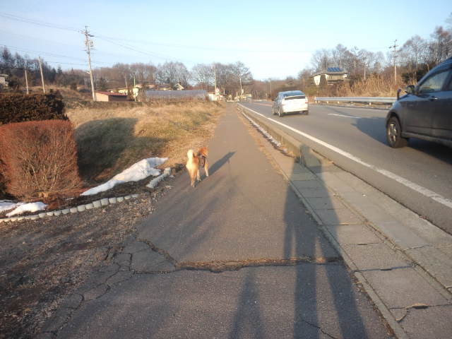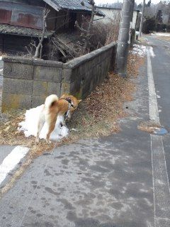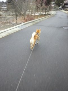 今日は溶けてほとんどなくなってしまった雪の上を飛び跳ねていました! おしっこしました!