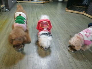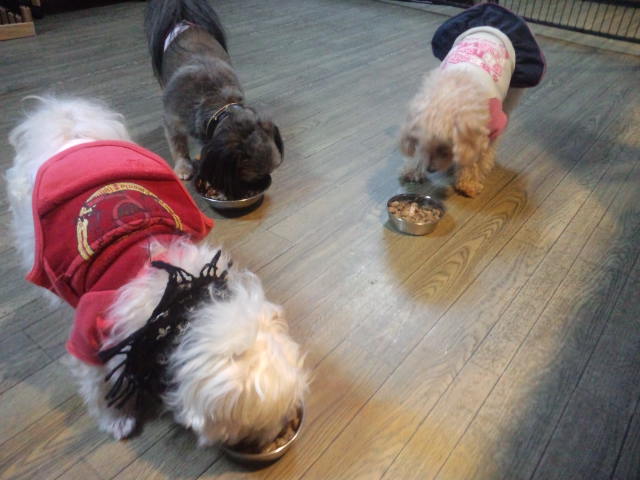 生涯預かりマルチーズキュー君とトイプーベラちゃん、しっかり完食しました。トイプーパピー虎治朗君、しっかり完食しました。
