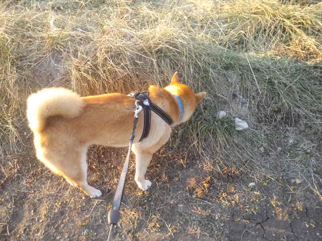 今朝の天気は曇りです。 ハチくんは元気に坂をスイスイ登っていきます! おしっこしました!